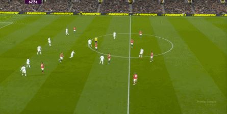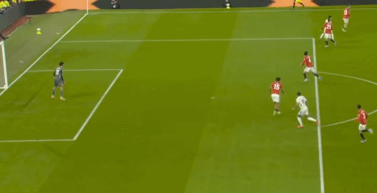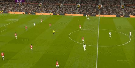 防守阶段,曼联先失去层次,后失去宽度,让利兹联还是完成了起脚,靠卢克-肖的解围才清除掉风险,然后才是曼联的反击。