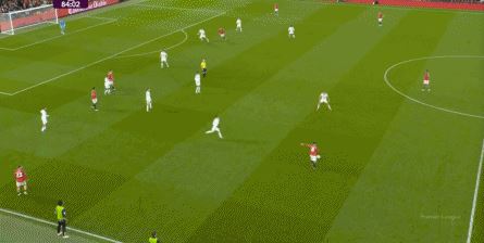 点燃了主场的气氛之后,曼联的表现有了一些提振,从而打出了一段连续的转换进攻: