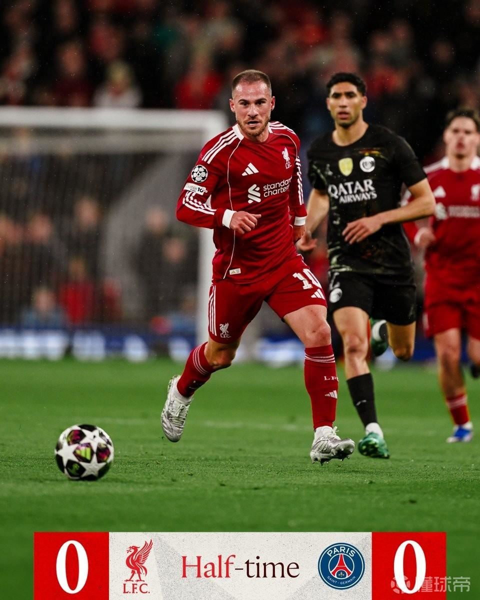 北京时间4月15日,在欧冠1/4决赛次回合的比赛中,利物浦半场过后主场0-0与巴黎圣日耳曼战平,两回合总比分仍0-2落后于对手。