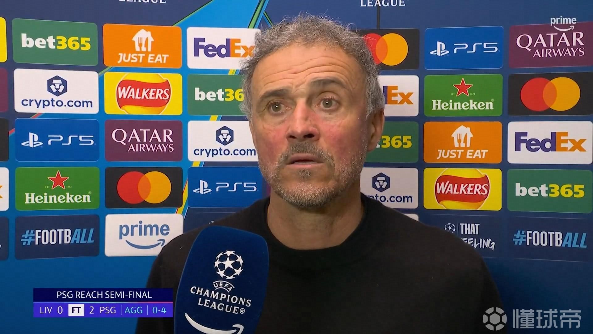 率队在欧冠1/4决赛总比分4-0淘汰利物浦成功晋级之后,巴黎圣日耳曼主教练恩里克接受了来自亚马逊Prime Video的采访。