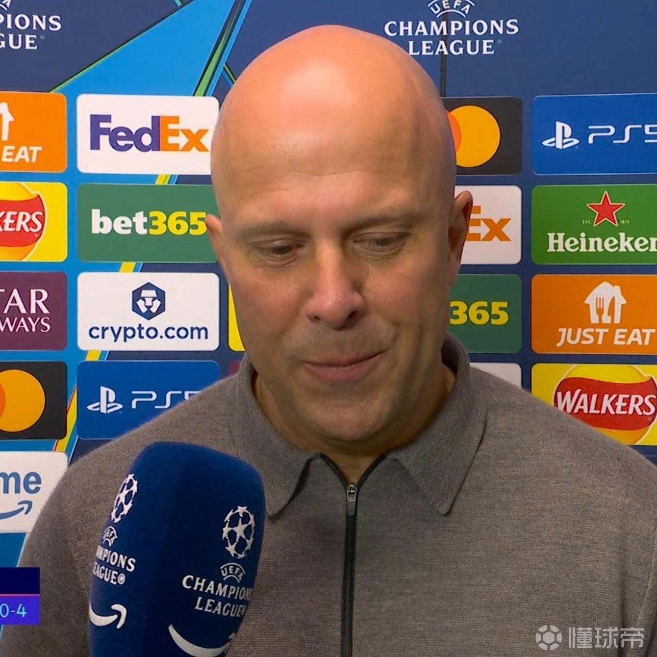 在主场0-2不敌巴黎,以总比分0-4无缘欧冠四强的赛后,利物浦主帅斯洛特接受了亚马逊体育的采访。
