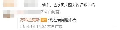 之后有球迷在评论区询问球员能否出战大连英博,博主回复:现在看问题不大。