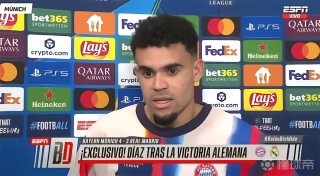 在拜仁主场与皇马的欧冠1/4决赛次回合中,迪亚斯在终场前打入关键远射,帮助球队最终以4-3击败皇马,以总比分6-4晋级四强。赛后,这名哥伦比亚射手接受了西班牙Movistar+的采访。