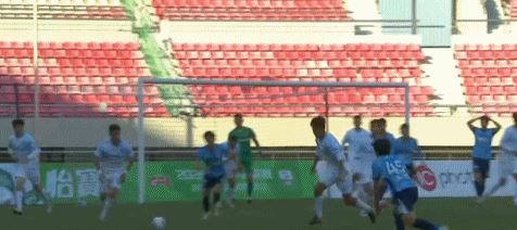 第16分钟,张俊哲门前将球撞进球门,兰州陇原竞技1-0大连英博B队