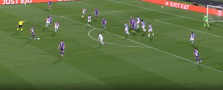 第53分钟,恩杜尔禁区外远射破门!佛罗伦萨2-1水晶宫