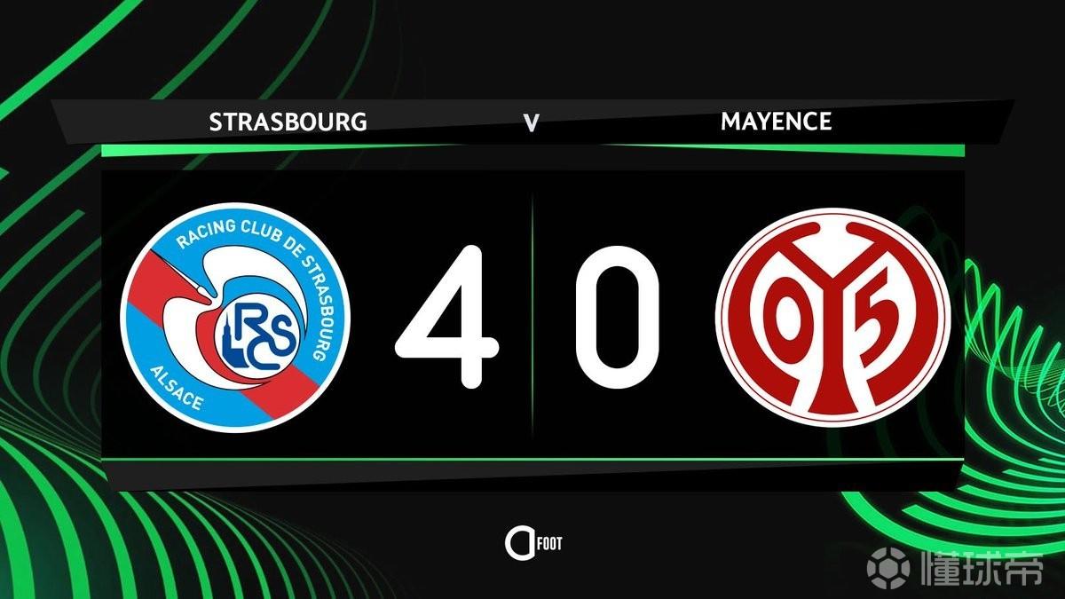 北京时间4月17日,在欧协联1/4决赛次回合的比赛中,斯特拉斯堡依靠纳纳西、瓦塔拉、恩西索以及埃梅加的进球主场4-0大胜美因茨,两回合总比分4-2逆转对手闯入四强。