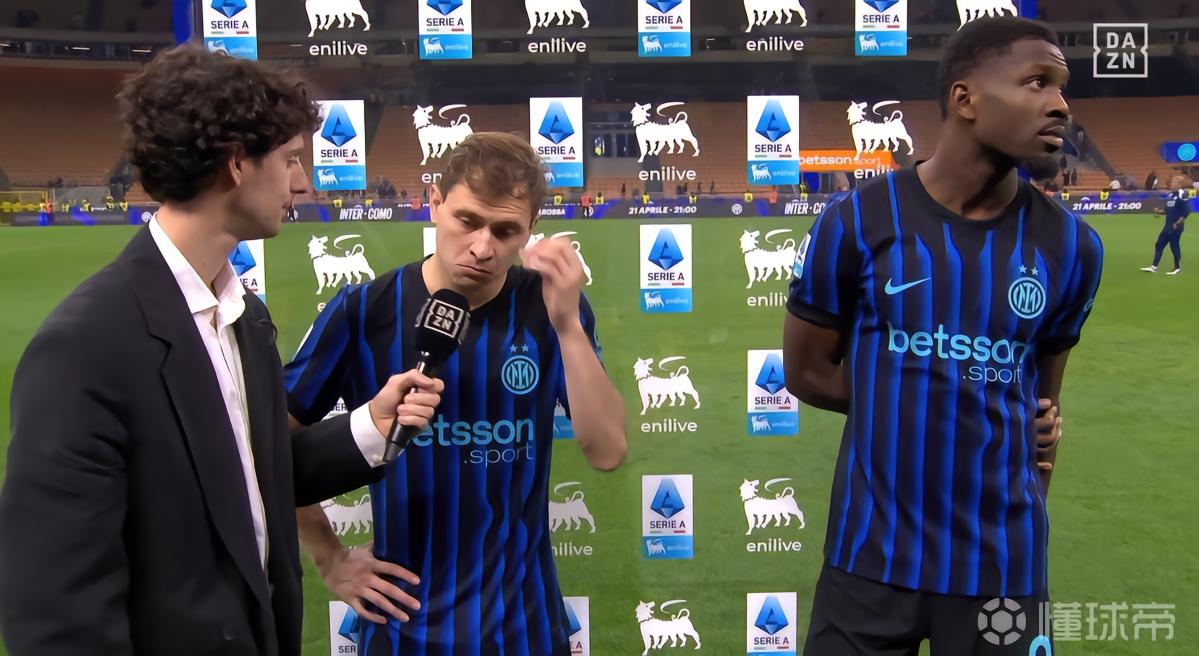 北京时间4月18日,在意甲第33轮的比赛中,巴雷拉的进球帮助国际米兰主场3-0击败了卡利亚里,目前在多赛一场的情况下以12分的优势领跑积分榜,赛后这位当选最佳球员的意大利球星接受了DAZN的采访。