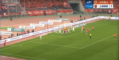 第72分钟,克雷桑小角度定位球射门直接转进球门!泰山1-1扳平海港