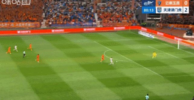第81分钟,谢蒂內送手术刀长传,基莱斯反击推射远角得手,云南玉昆0-3天津津门虎。