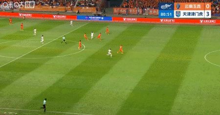 第81分钟,谢蒂内助攻,基莱斯破门完成双响,津门虎3-0云南