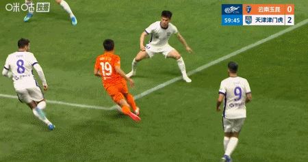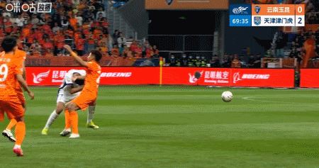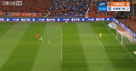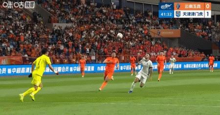 第41分钟,王政豪长传找身后,基莱斯中场插上破门,津门虎1-0云南