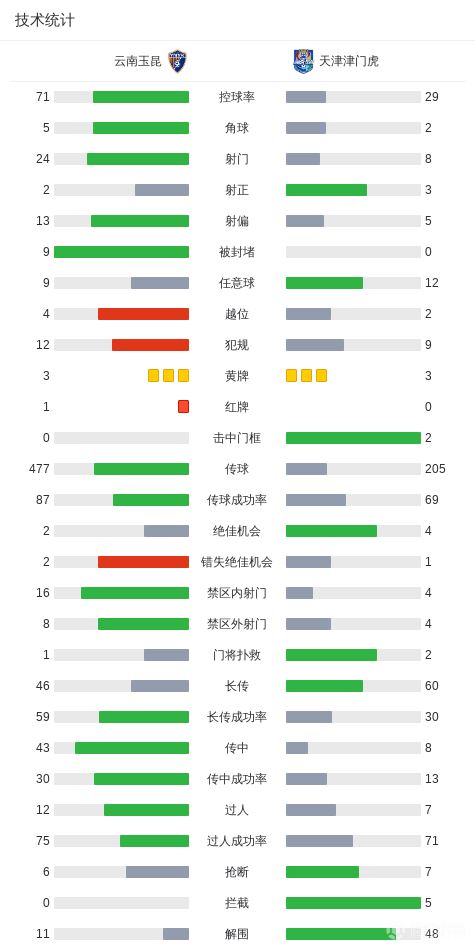 关键事件第41分钟,王政豪长传找身后,基莱斯中场插上破门,津门虎1-0云南