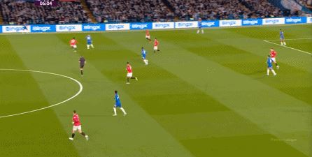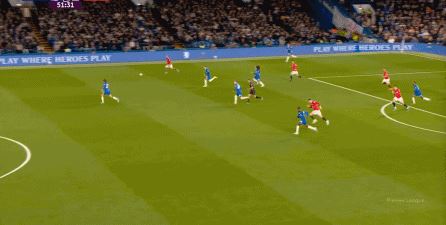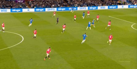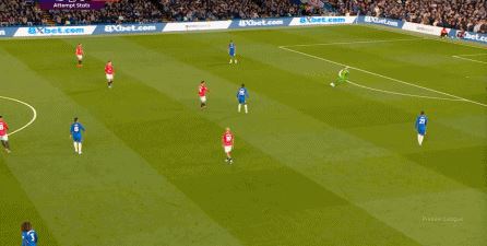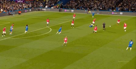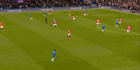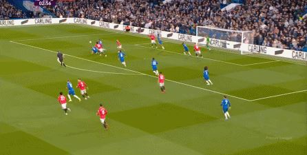 所以在曼联并不回避高位作业的情况下,切尔西在主场的开局打得其实还不错,他们既可以通过反击快速推进到前场: