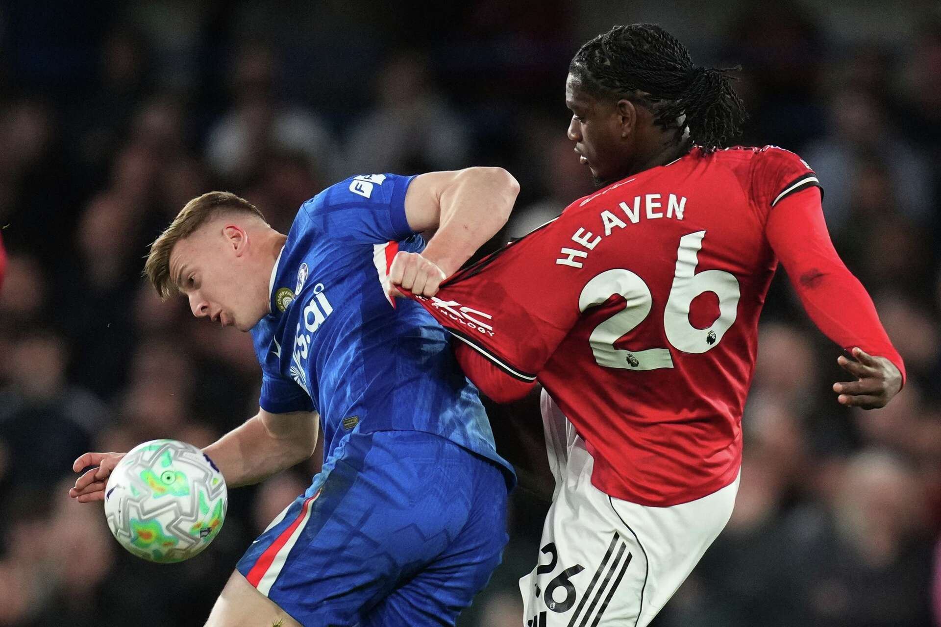 但是,这就是时运带来的帮助,曼联没有成熟中卫,切尔西也折损了主力前锋,一码还一码,但切尔西还有别人,这个时候的海文就还能发挥,就像第38分钟,他连续在内托和恩佐的中路射门前形成了防守作用: