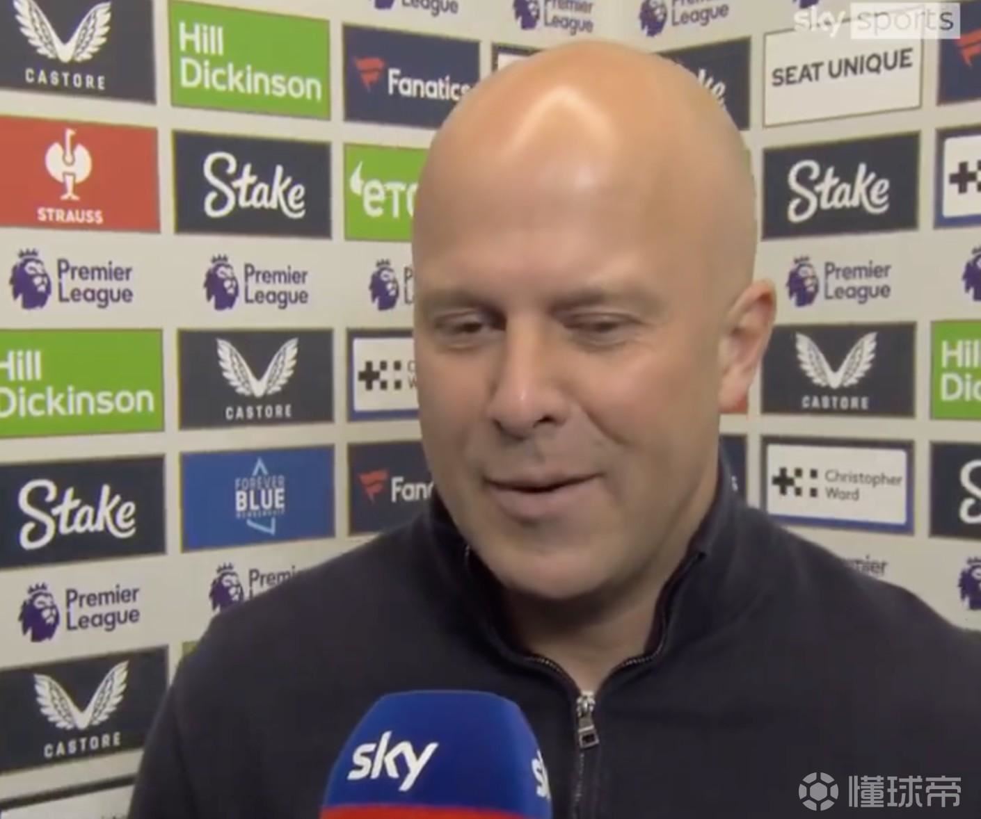 英超第33轮,利物浦客场2-1击败埃弗顿,赛后,红军主帅斯洛特接受了天空体育的采访。