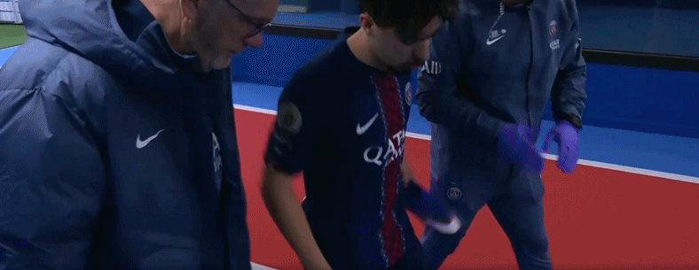第39分钟,维蒂尼亚受伤无法坚持,被扎伊尔-埃梅里换下