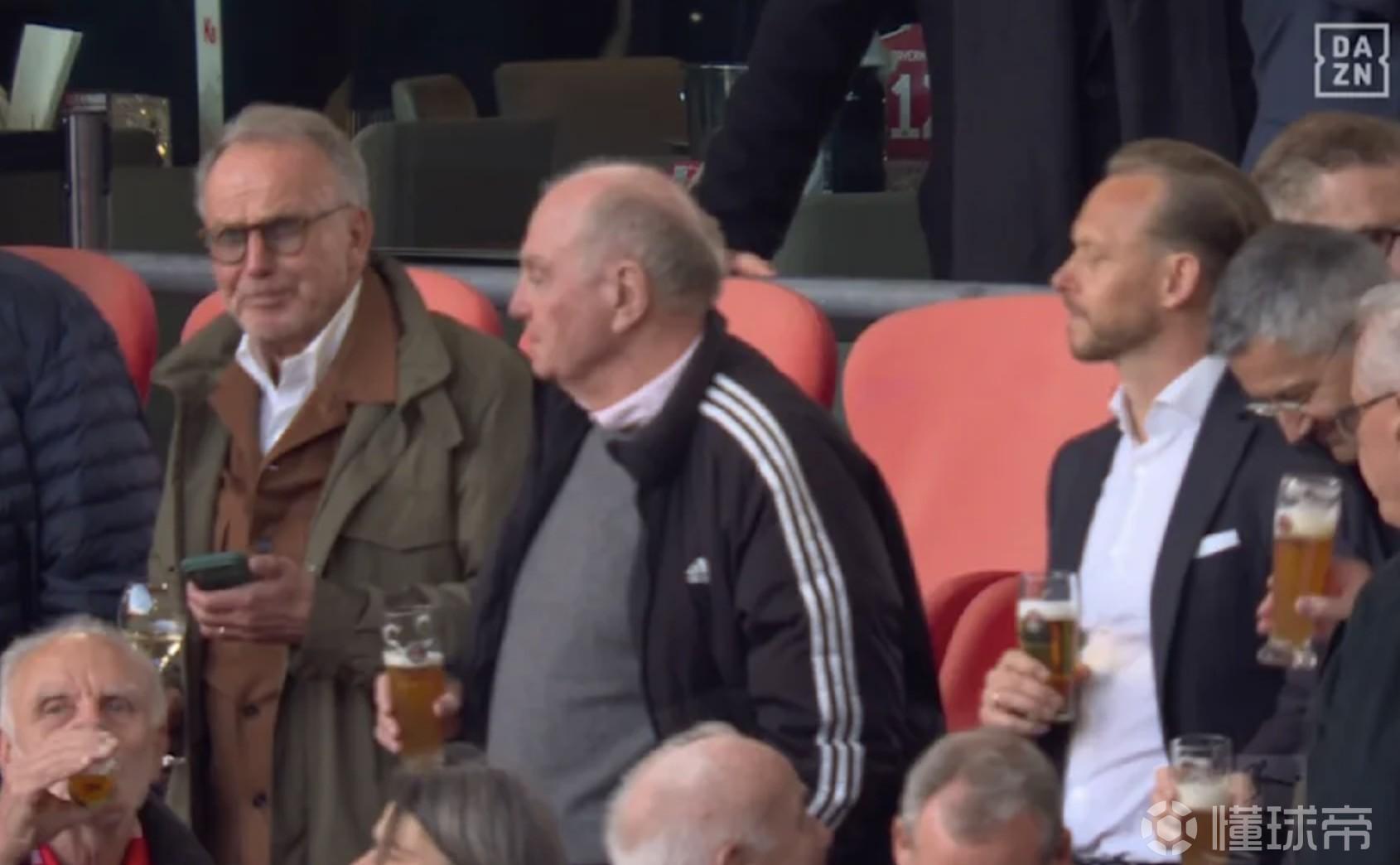 赫内斯与俱乐部主席海纳一样,选择喝了一杯小麦啤酒。而监事会成员鲁梅尼格则选择了白葡萄酒。