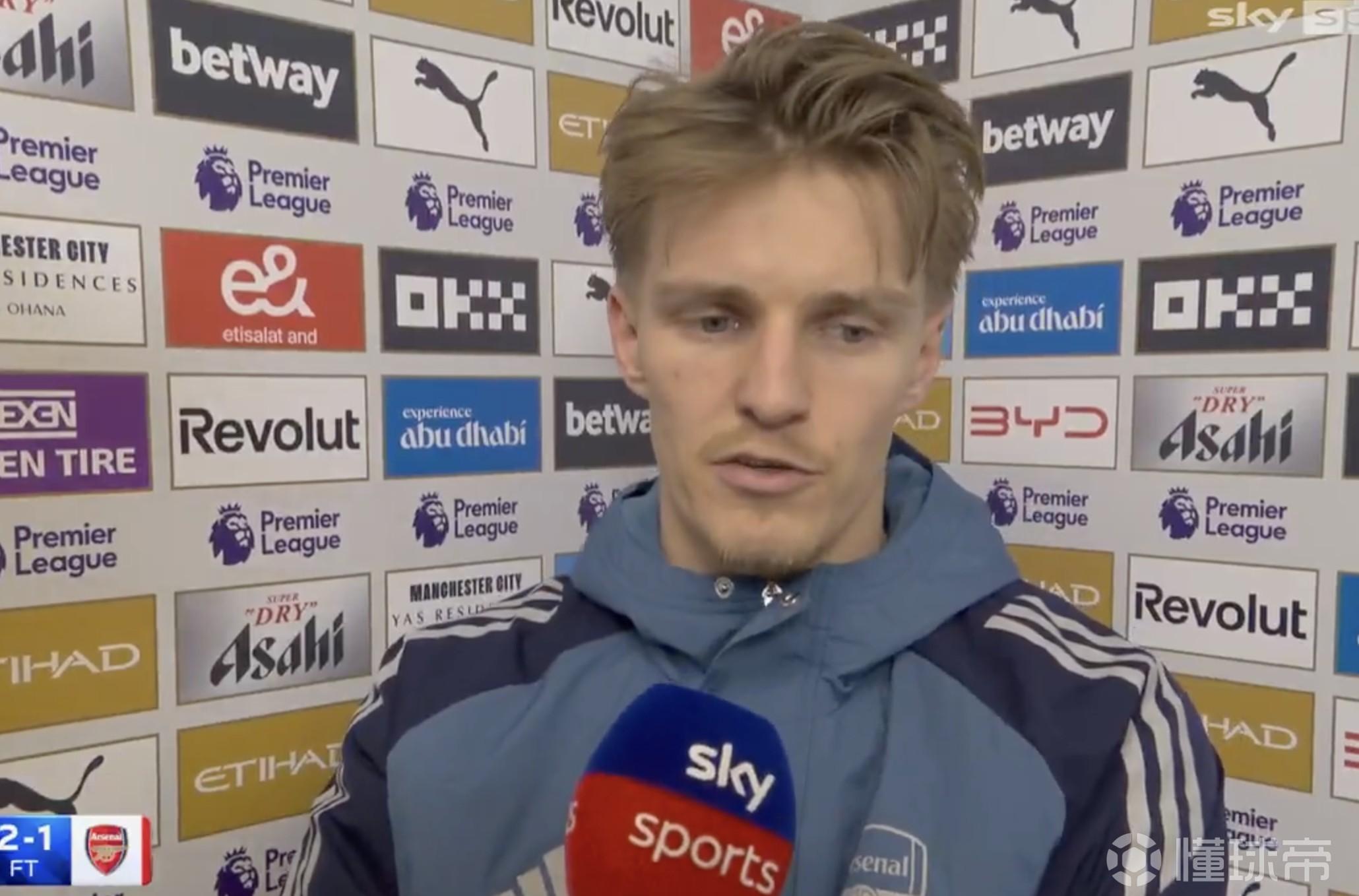 英超第33轮客场1-2不敌曼城之后,阿森纳队长厄德高接受了天空体育的采访。