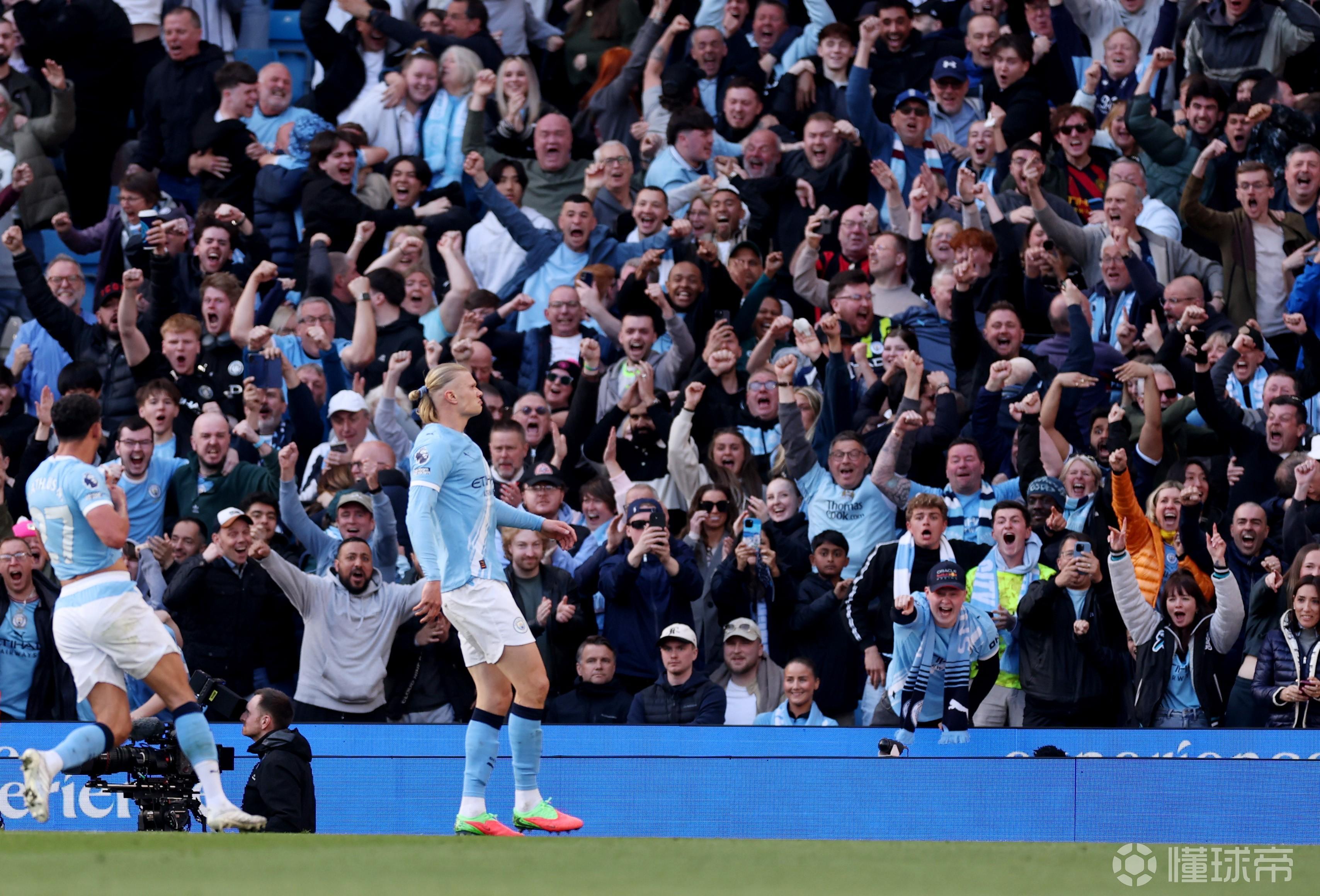 在周日晚进行的英超第33轮曼城主场对阵阿森纳的比赛中,哈兰德在第65分钟打进一球,帮助曼城再度取得领先。