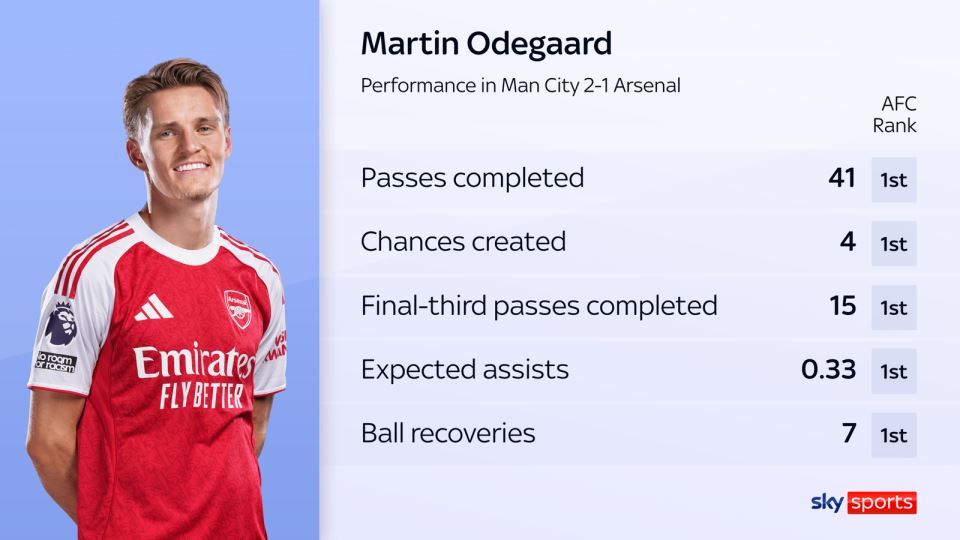 在伊蒂哈德球场,阿森纳展示出了更大的进攻自由。就像之前提到的,厄德高再一次证明了自己才是阿森纳的进攻灵感来源。