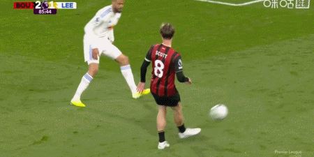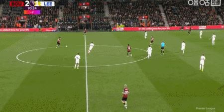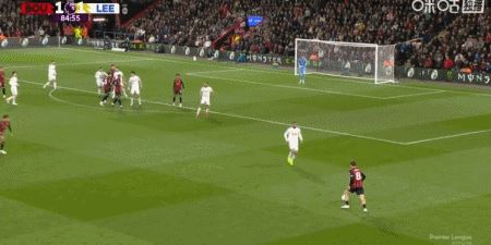 第90+7分钟,肖恩-朗斯塔夫抽射破门扳平比分,利兹联2-2伯恩茅斯