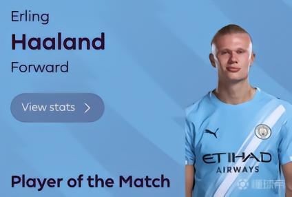 英超第34轮,曼城客场1-0击败伯恩利,此役打入全场唯一进球的曼城前锋哈兰德当选全场最佳球员。