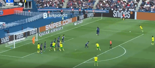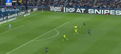 第38分钟,阿什拉夫传球,杜埃精彩小角度劲射破门,巴黎2-0南特