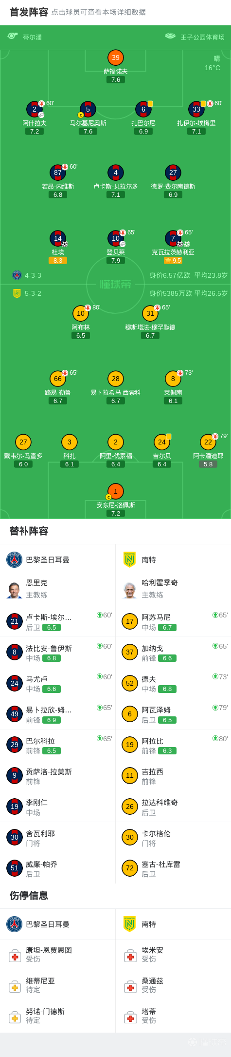 第13分钟,南特球员手球送点,克瓦拉茨赫利亚主罚命中,巴黎1-0南特