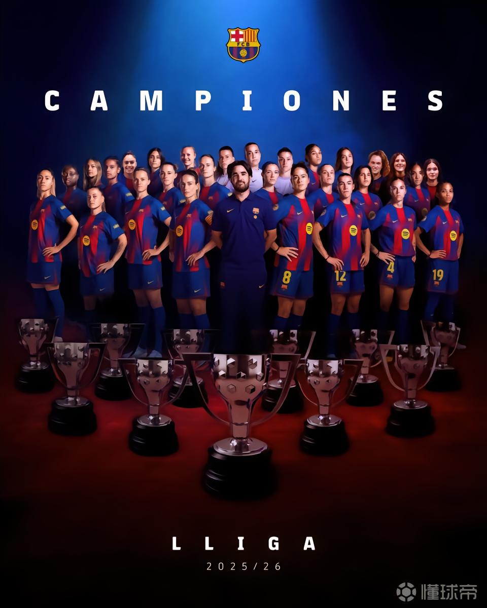 在本场比赛4-1大胜西班牙人女足后,巴塞罗那女足以75分(25胜1负)高居榜首,领先第二名的皇家马德里女足多达16分,在后者仅剩最后5轮比赛的情况下,巴塞罗那女足提前夺得2025-26赛季西女超冠军。