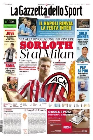 按照《米兰体育报》的说法,瑟洛特已经同意在今夏转投米兰,这位挪威国脚也准备向马竞提出离队要求。