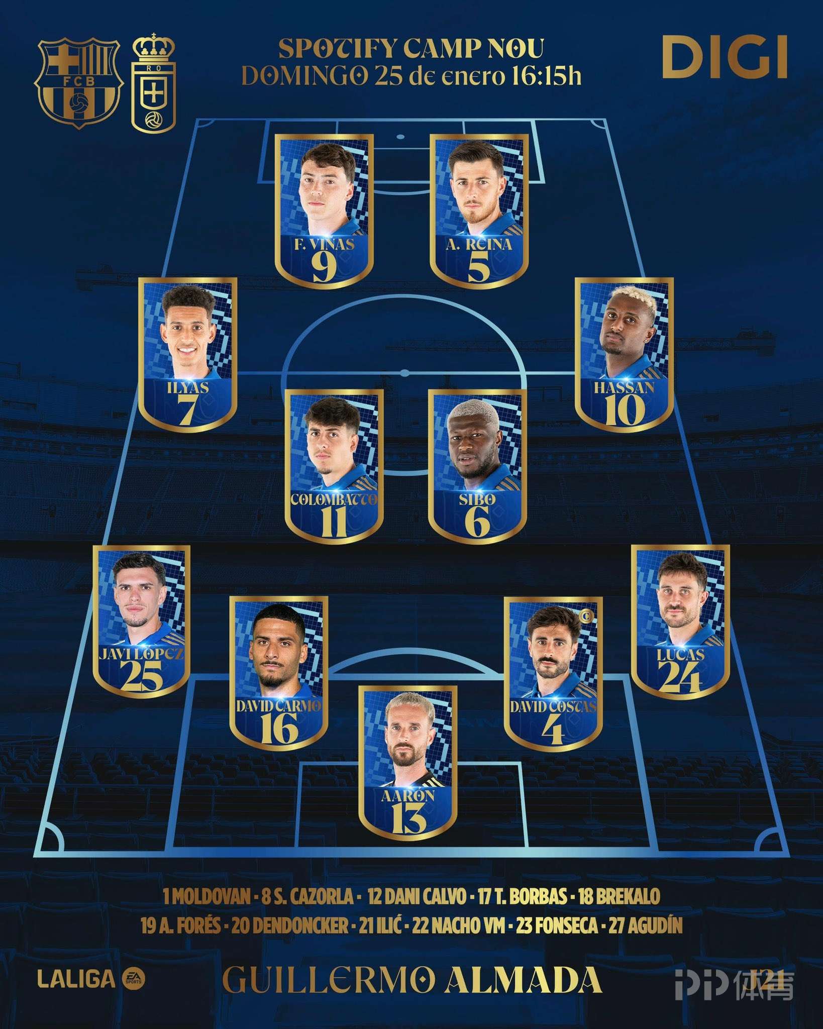 北京时间1月25日23:15,西甲联赛第21轮,巴塞罗那坐镇主场迎战皇家奥维耶多,赛前双方公布首发: