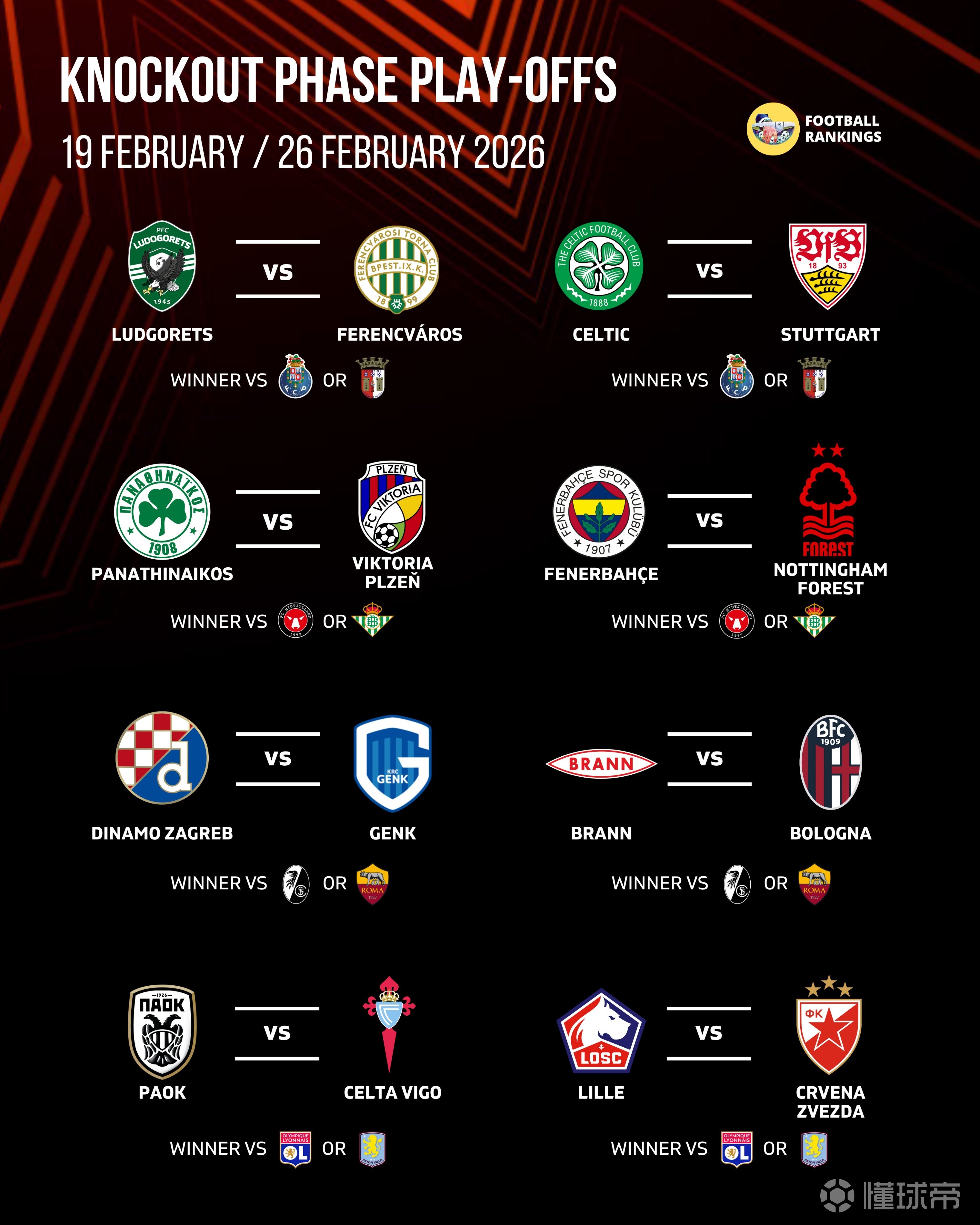 北京时间1月30日,2025/26赛季欧联淘汰赛附加赛抽签仪式在瑞士尼翁的欧足联总部进行,在附加赛中,诺丁汉森林即将迎战费内巴切,斯图加特将迎战凯尔特人。
