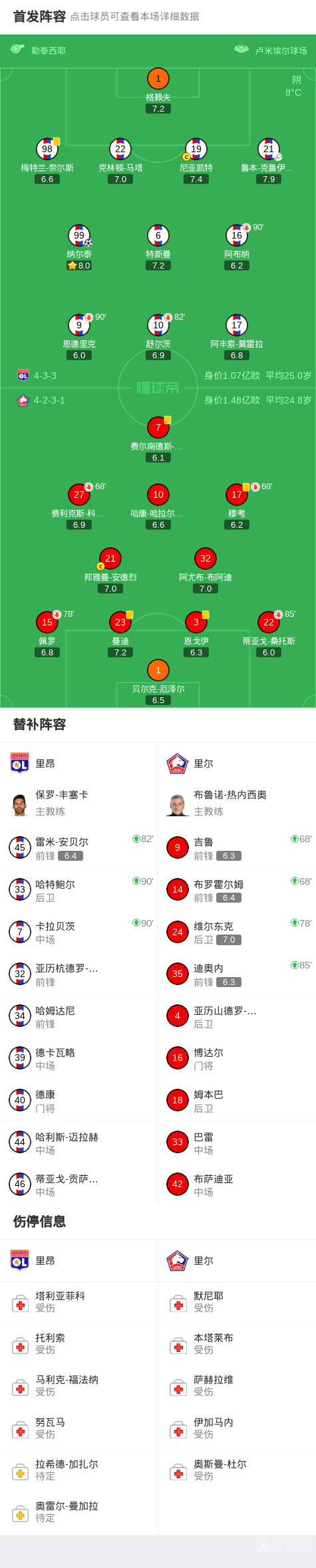 北京时间2月1日法甲联赛第20轮,里昂主场对阵里尔。上半场纳尔泰插上推射破门打进全场唯一进球,下半场恩德里克单骑闯关错失良机。最终,里昂主场1-0小胜里尔。