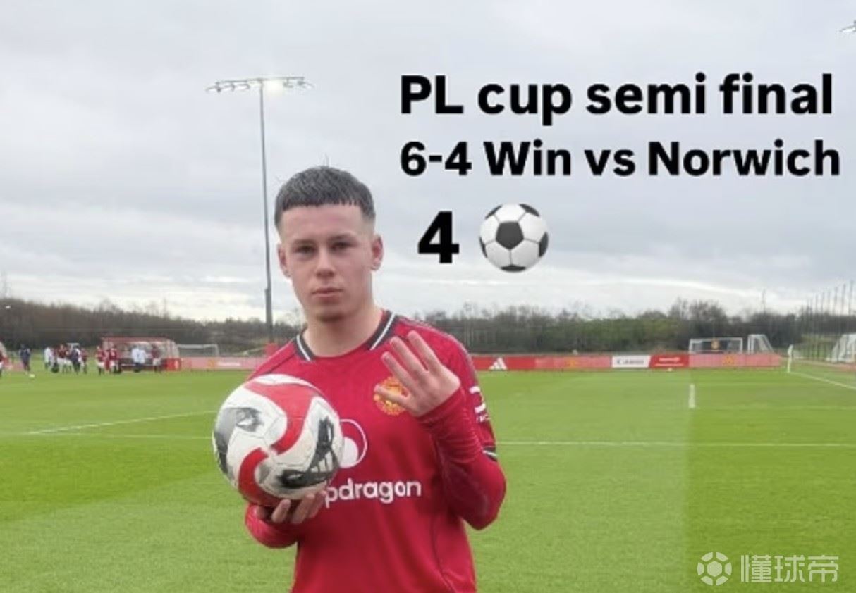 当地时间2月7日,在U16联赛杯半决赛中,曼联U16以6-4战胜诺维奇U16。在本场比赛中,效力于曼联U16的鲁尼之子凯-鲁尼上演大四喜。