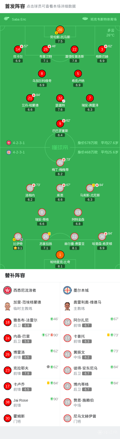 第66分钟,巴里传球失误,比伊奇突入禁区兜射破门,墨尔本城1-0领先