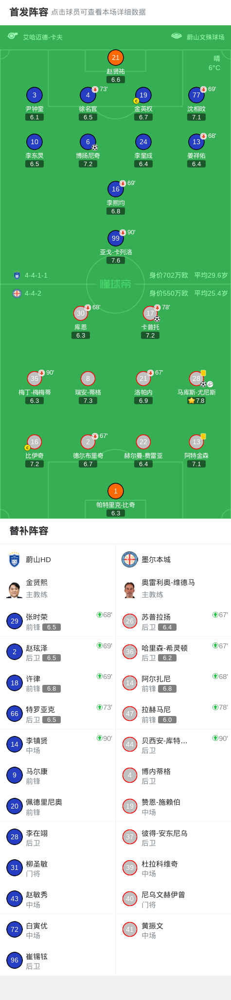 北京时间2月11日亚足联冠军精英联赛 联赛阶段 第7轮,蔚山HD对阵墨尔本城。蔚山HD博扬尼奇破门。墨尔本城卡普托破门,马库斯-尤尼斯破门。最终比分蔚山HD 1-2 墨尔本城。