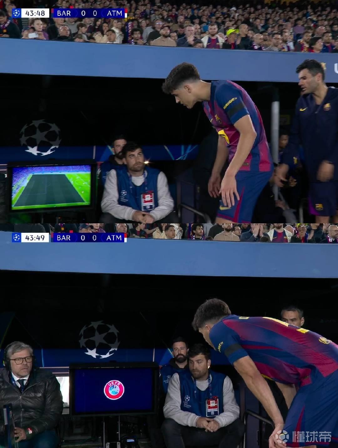库巴西想看VAR屏幕确认自己的红牌,结果屏幕立即被关掉了