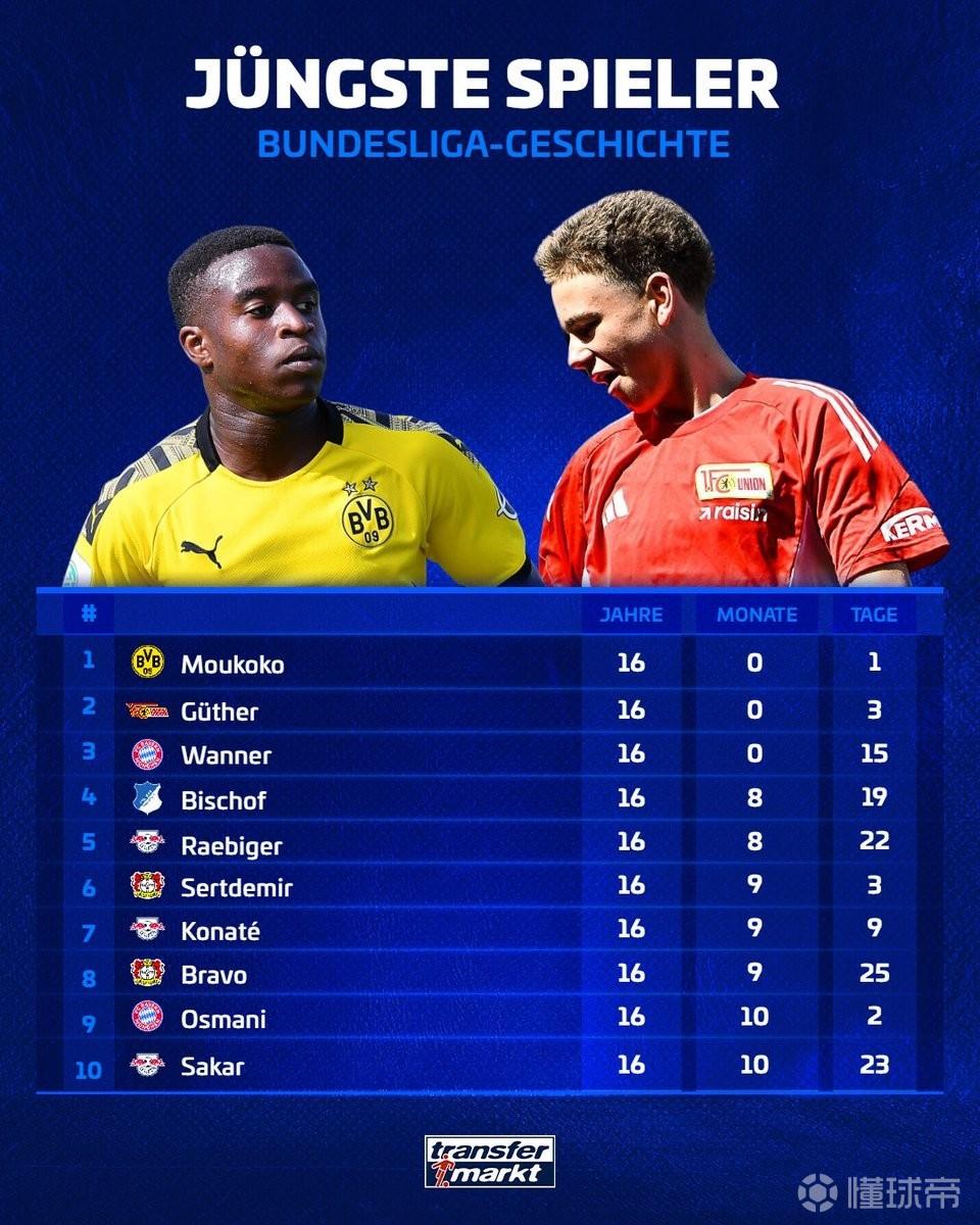 德甲历史最年轻出场球员前10:穆科科第1,比朔夫、科纳特上榜