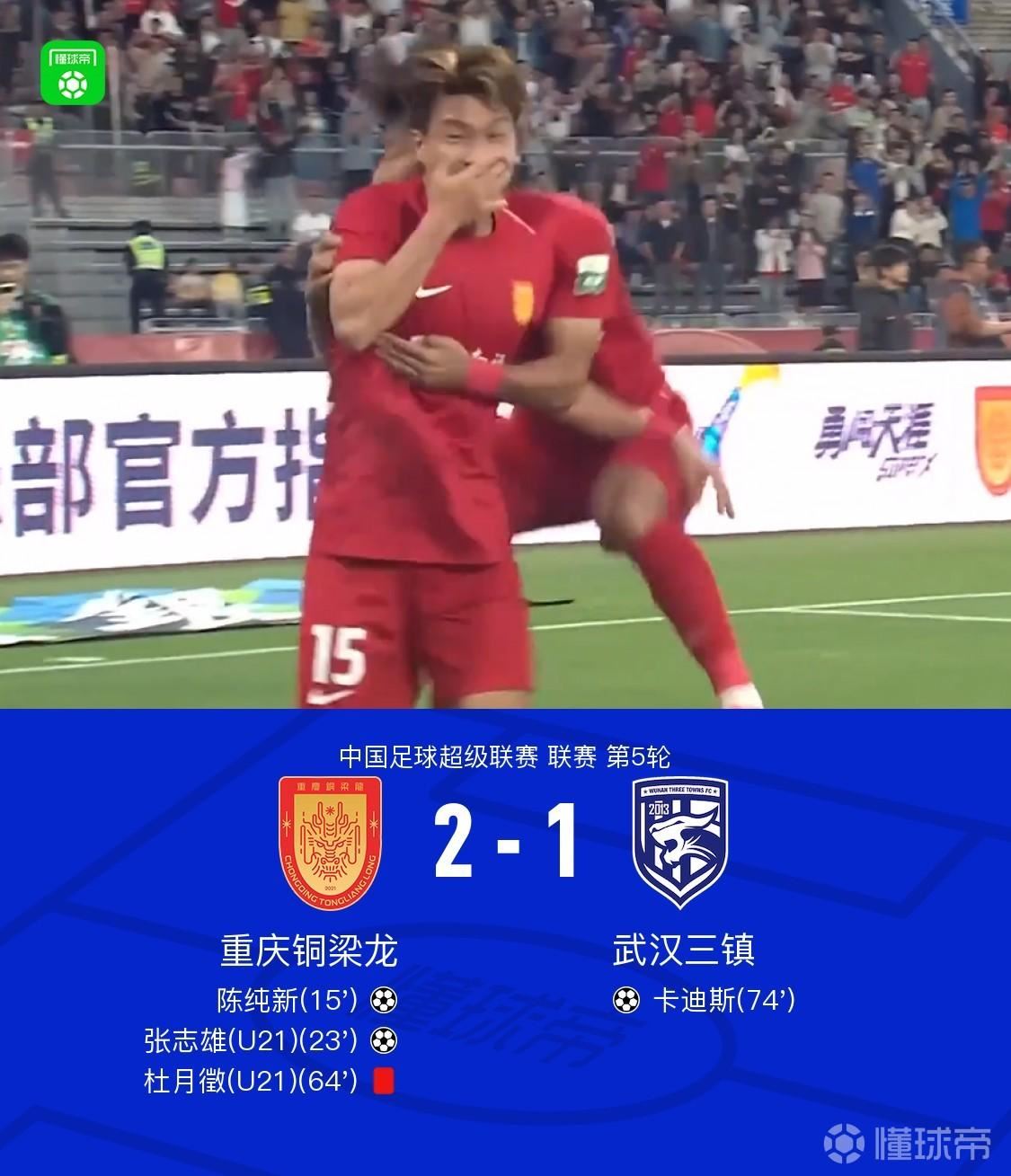 十人铜梁龙2-1三镇暂登榜首,张志雄、陈纯新破门,杜月徵染红