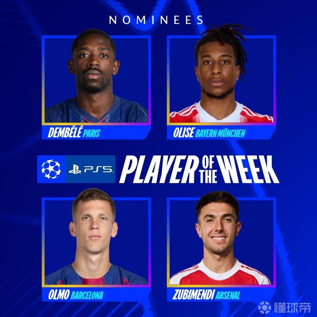 本周欧冠最佳球员候选:登贝莱、奥利塞、奥尔莫、苏比门迪