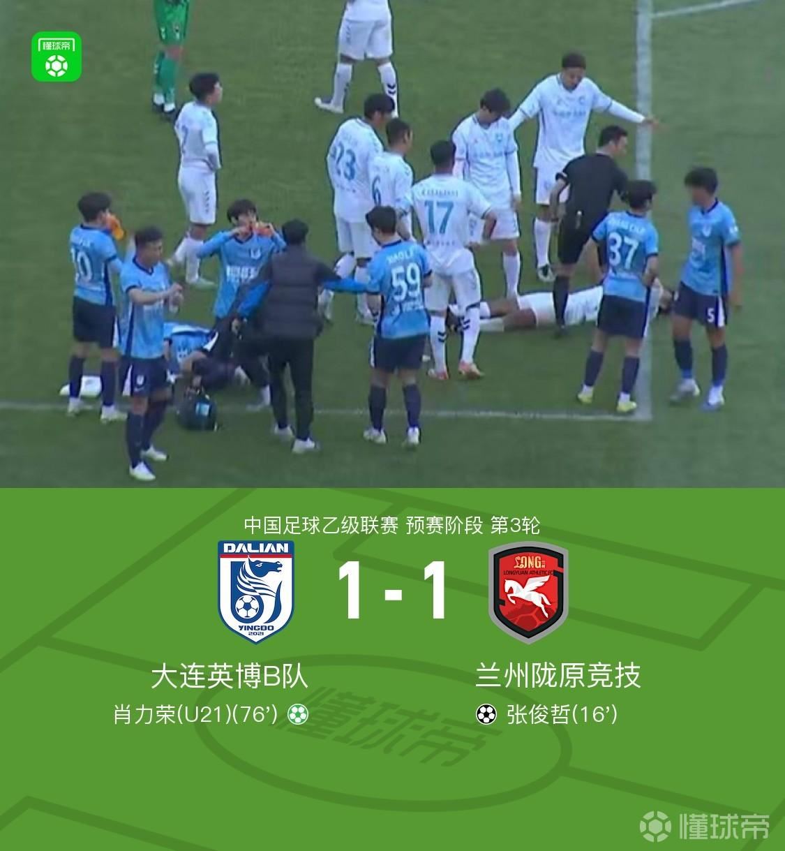 大连英博B队1-1兰州陇原竞技,张俊哲破门,肖力荣点射扳平