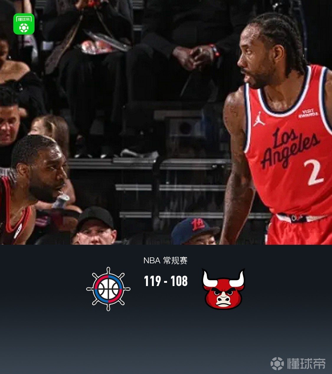 第四节,开节快船马图林、乔丹-米勒继续联手反击得分领先14分,公牛琼斯,吉迪反击止血,而随后双方拉锯快船始终保持10分上下领先,最终快船119-108战胜公牛。