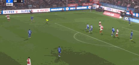第10分钟,马涅蒂左路传中稍有变线,阿若克头槌破门,马赛0-1