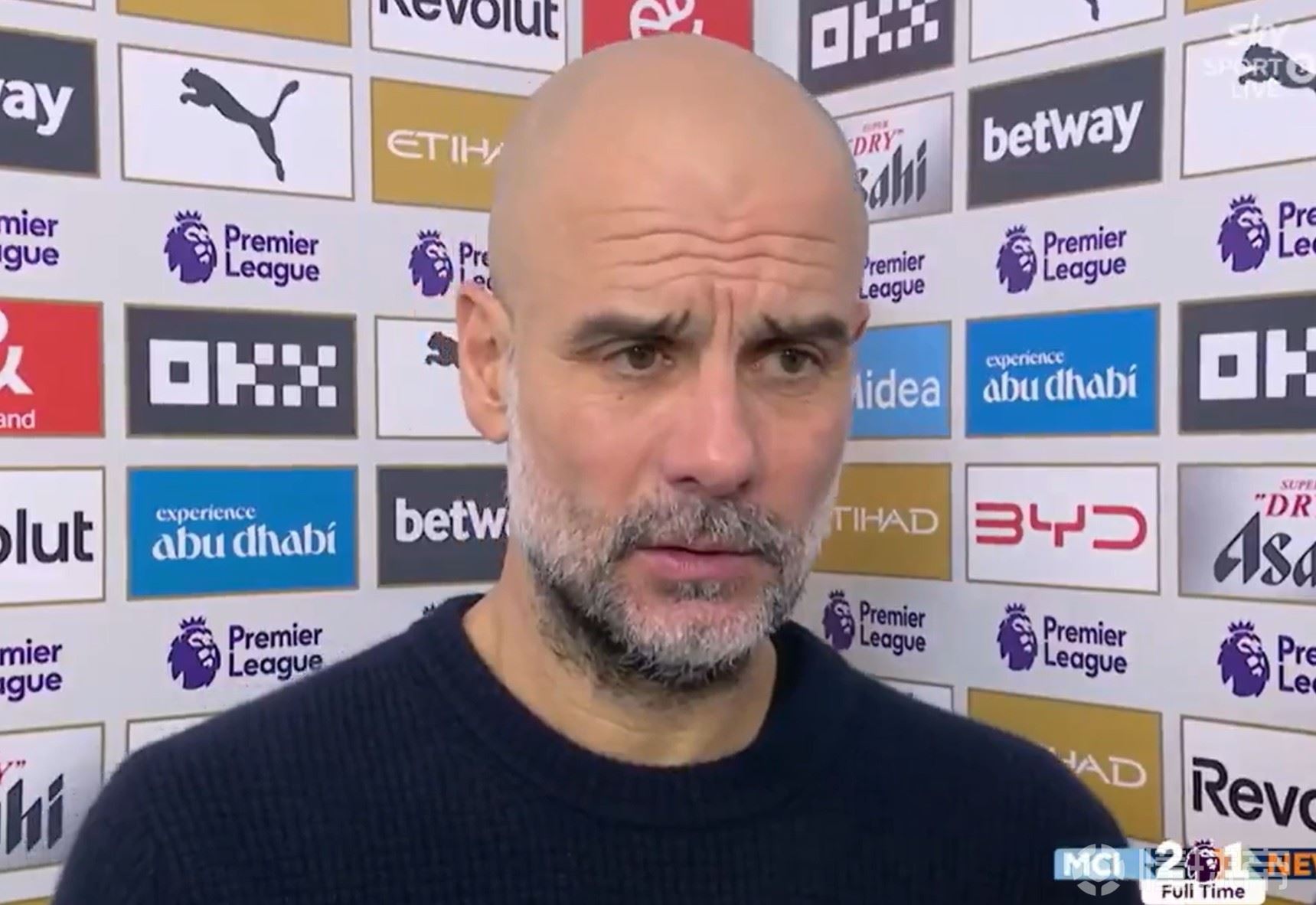 英超联赛第27轮,曼城在主场2-1战胜纽卡。赛后,曼城主帅瓜迪奥拉接受了《当日比赛》节目的采访。