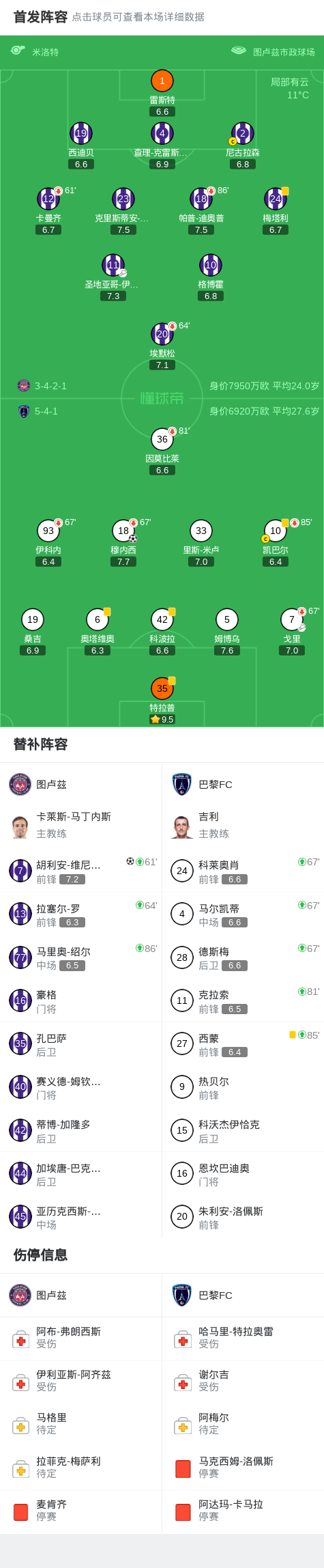 第87分钟,图卢兹球员圣地亚哥-伊达尔戈助攻胡利安-维尼奥洛打入一球。