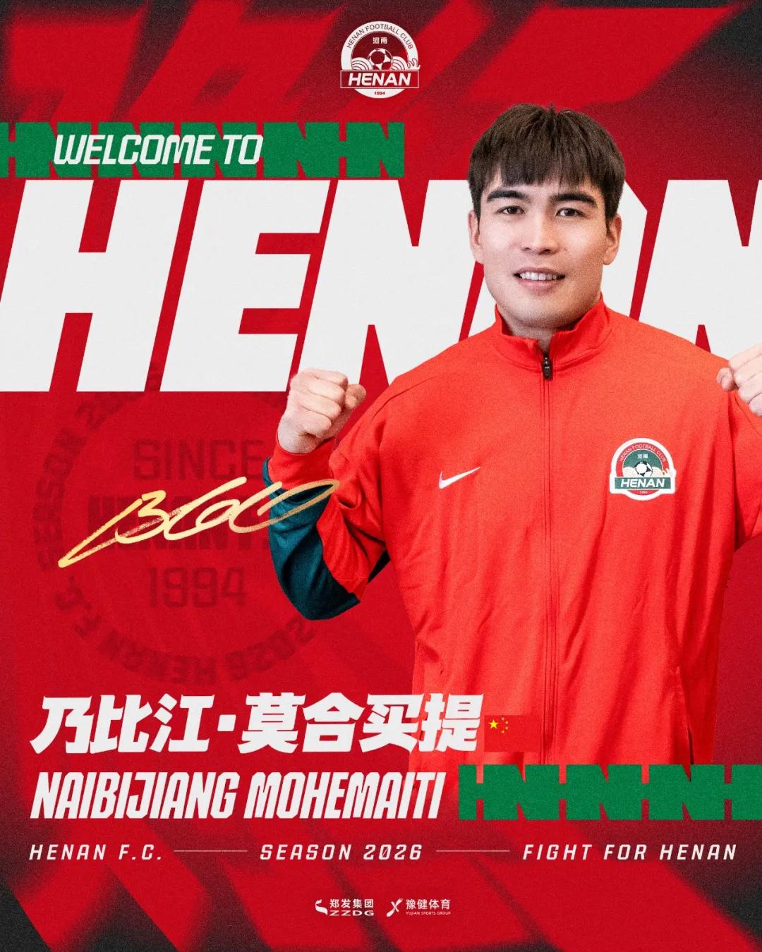 欢迎乃比江-莫合买提加入河南大家庭,期待你快速融入球队,与全体将士并肩作战,为河南足球拼下更多荣耀!