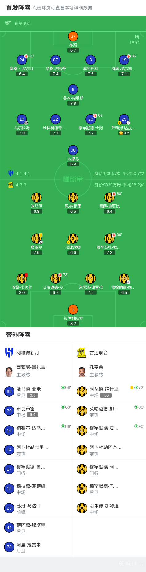 第9分钟,哈桑-卡代什被红牌罚下,吉达联合少一人作战