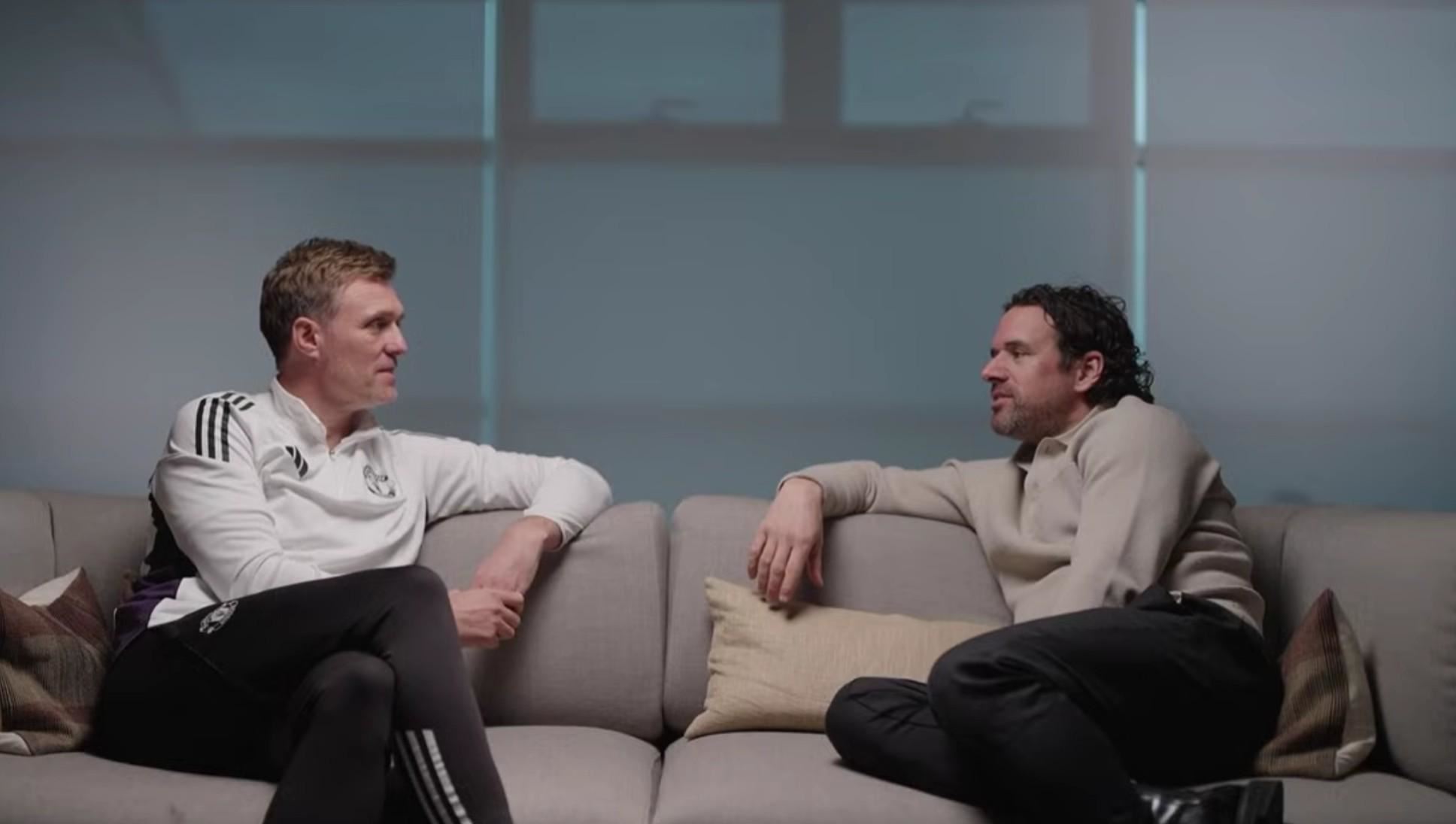 你说得太对了。执教绝不是一个人的独角戏。我一直跟队员们强调,我作为球员的生涯已经结束了,那段时光我无比珍惜,也非常幸运能在曼联这样伟大的俱乐部效力,和包括你在内的一众优秀球员并肩作战,赢得了许多荣誉,那是我人生中最美好的一段岁月。