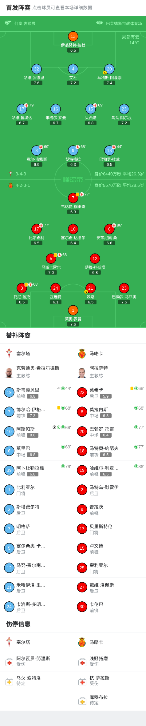 北京时间2月23日西班牙足球甲级联赛 联赛 第25轮,塞尔塔主场对阵马略卡。塞尔塔阿斯帕斯梅开二度。最终比分塞尔塔 2-0 马略卡。