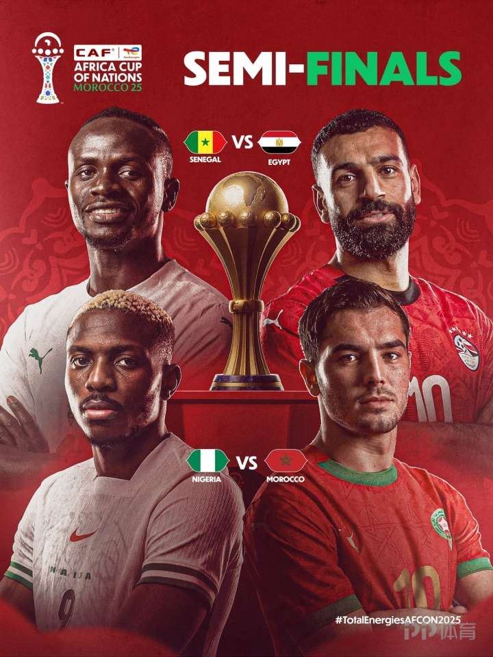 非洲杯1/4决赛战罢,本届赛事四强全部确定:塞内加尔、摩洛哥、尼日利亚、埃及。半决赛将在1月15日开战,具体赛程如下: